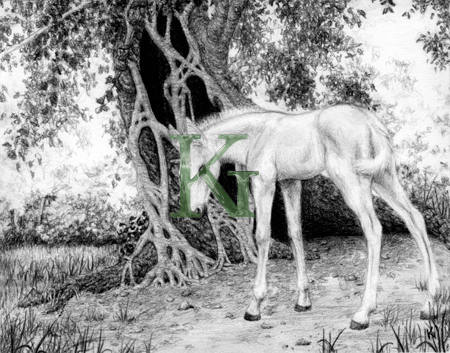 Original hand-drawn graphite-pencil "Unicorn" illustration by Kerie Green, reprinted here on high-quality card stock (10.8 cm x 13.9 cm). Suitable for any occasion - no inscription within card. Each card comes with its own envelope.