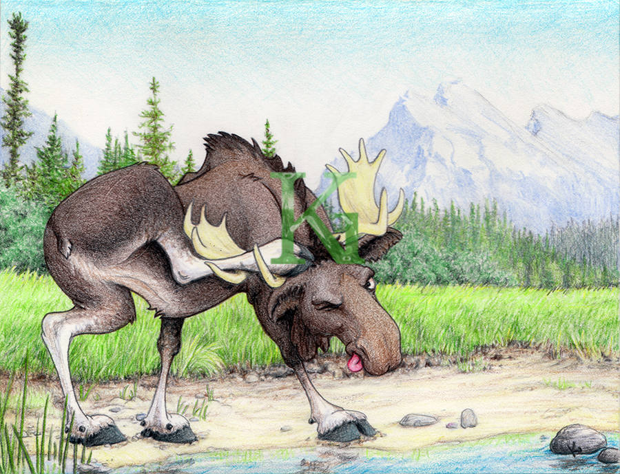 Original hand-drawn graphite-pencil and pencil crayon "Moose Itch" illustration by Kerie Green, reprinted here on high-quality card stock (10.8 cm x 13.9 cm). Suitable for any occasion - no inscription within card. Each card comes with its own envelope.