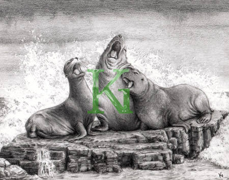 Original hand-drawn graphite-pencil "Singing Seals" illustration by Kerie Green, reprinted here on high-quality card stock (10.8 cm x 13.9 cm). Suitable for any occasion - no inscription within card. Each card comes with its own envelope.