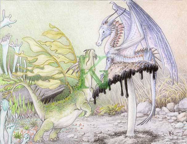 Original hand-drawn graphite-pencil "Dragons" illustration by Kerie Green, reprinted here on high-quality card stock (10.8 cm x 13.9 cm). Suitable for any occasion - no inscription within card. Each card comes with its own envelope.