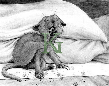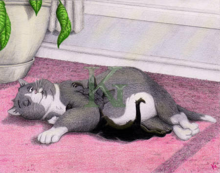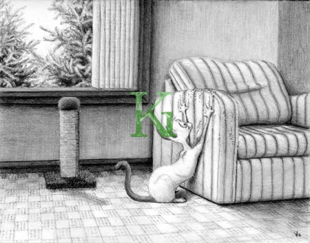 Original hand-drawn graphite-pencil "Cat Scratch" illustration by Kerie Green, reprinted here on high-quality card stock (10.8 cm x 13.9 cm). Suitable for any occasion - no inscription within card. Each card comes with its own envelope.