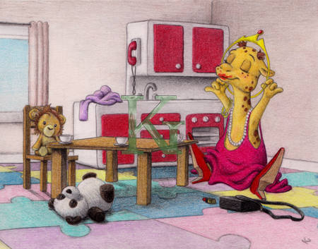 Original hand-drawn graphite-pencil and pencil-crayon "Giraffe Princess" illustration by Kerie Green, reprinted here on high-quality card stock (10.8 cm x 13.9 cm). Suitable for any occasion - no inscription within card. Each card comes with its own envelope.