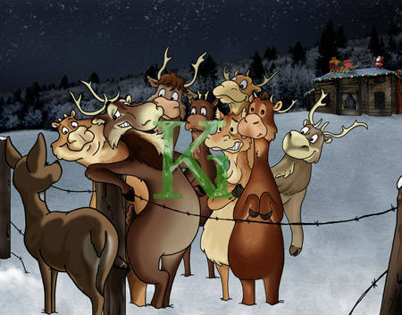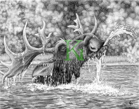 Original hand-drawn graphite-pencil "Moose Spitting" illustration by Kerie Green, reprinted here on high-quality card stock (10.8 cm x 13.9 cm). Christmas themed image - no inscription within card. Each card comes with its own envelope.