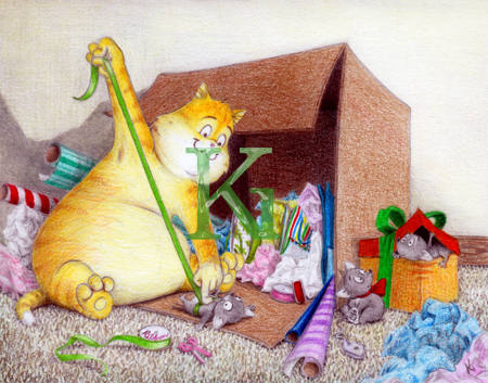 Original hand-drawn graphite-pencil and pencil crayon "Gift Wrapped" illustration by Kerie Green, reprinted here on high-quality card stock (10.8 cm x 13.9 cm). Suitable for any occasion - no inscription within card. Each card comes with its own envelope.