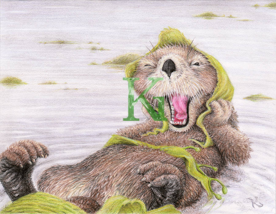 Original hand-drawn graphite-pencil and pencil crayon "Otter Playing" illustration by Kerie Green, reprinted here on high-quality card stock (10.8 cm x 13.9 cm). Suitable for any occasion - no inscription within card. Each card comes with its own envelope.
