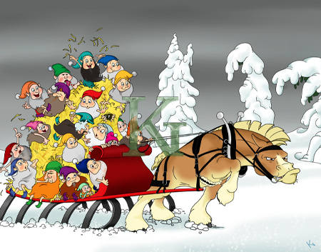 Original hand-drawn digital painting "Sleigh" illustration by Kerie Green, reprinted here on high-quality card stock (10.8 cm x 13.9 cm). Christmas themed image - no inscription within card. Each card comes with its own envelope.