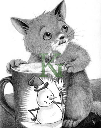 Original hand-drawn graphite-pencil "Kitten Cocoa" illustration by Kerie Green, reprinted here on high-quality card stock (10.8 cm x 13.9 cm). Suitable for any occasion - no inscription within card. Each card comes with its own envelope.