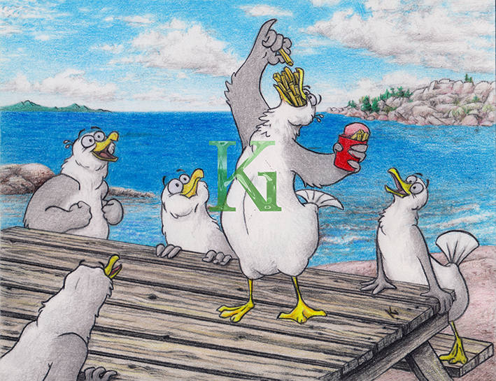 Original hand-drawn graphite-pencil "Gulls" illustration by Kerie Green, reprinted here on high-quality card stock (10.8 cm x 13.9 cm). Suitable for any occasion - no inscription within card. Each card comes with its own envelope.